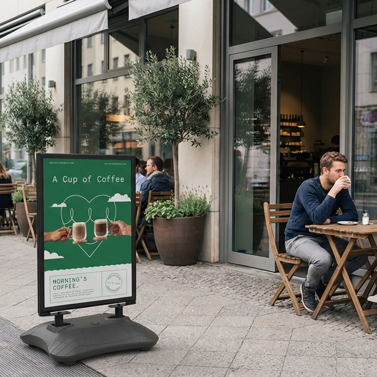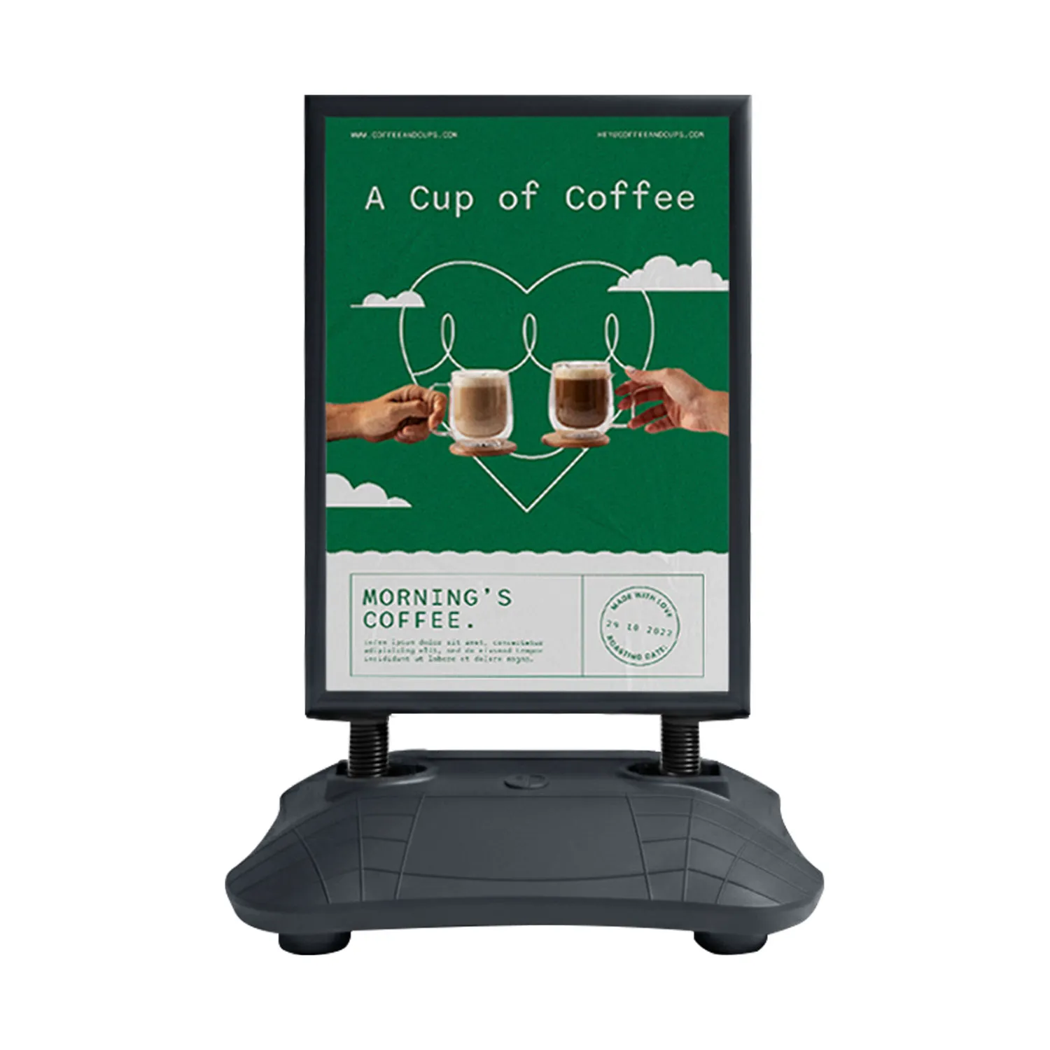 StormPro, sade, klasik ve güçlü bir sunumu önceliklendiren markalar için tasarlanmış, çift taraflı profesyonel bir dış mekân reklam panosudur. Minimalist yapısı ve su ile doldurulabilen taban sistemi sayesinde, özellikle yaya trafiğinin yoğun olduğu alanlarda mesajınızı her iki yönden de yüksek görünürlükle iletir.